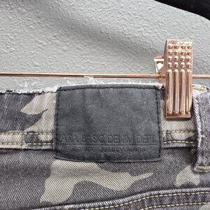 Zara Basic Z1975 Denim Jeans Womens 6 Gray Camo Distressed Skinny Frayed Hem