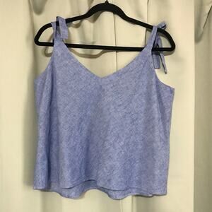Zara Basic Z1975 Denim Tie Strap Linen Blend Blouse - featuring a chambray like denim look with tie spaghetti straps. Perfect for the spring and summer time! In excellent condition!