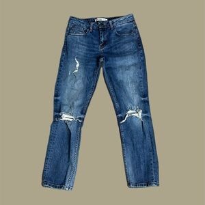 Zara Basic Z1975 Denim Women’s Mid-Rise Distressed Crop Straight Leg Jeans Sz 2