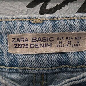 Zara Basic Z1975 Distressed Wide Leg Cropped Jeans