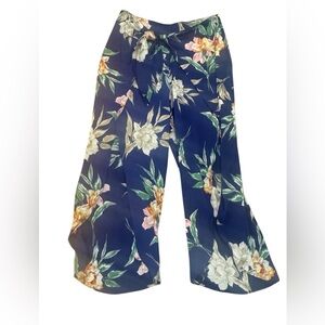 Zara Basic floral palazzo split pants XS breezy wrap tie waist crop Hawaiian