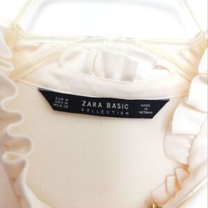 Zara Basic Collection Ivory Long-sleeve Ruffle Blouse