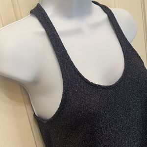 Zara Basic Evening Medium Navy Blue Metallic Shimmer Racerback Zipper Sexy Top