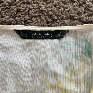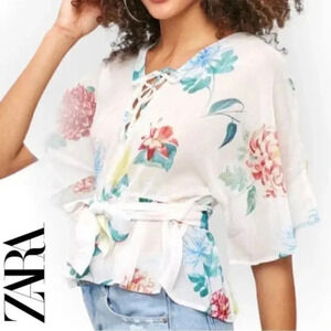 Zara Basic Ivory Floral Lace Up Peplum Blouse, women’s size S