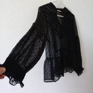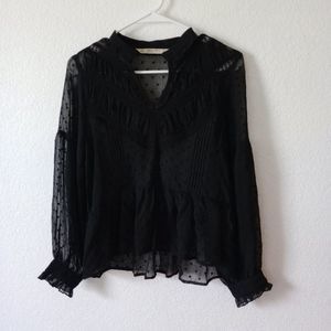 Zara Basic Women's dotted Sheer Blouse with Lace Black size Small