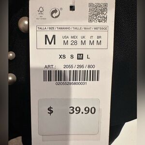 Elevate your wardrobe with this Zara Basics black mini skirt, featuring beautiful pearl detailing for a touch of elegance. The skirt's sleek, flattering fit is perfect for both casual and dressier occasions. Brand new with tags, it’s ideal for pairing with your favorite tops, blouses, or sweaters for a chic, trendy look. A must-have staple for any fashion-forward closet!