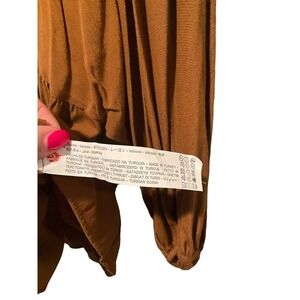 Zara Basics Blouse Top Women's Size L Brown Long Sleeve Knotted Neck Pullover.