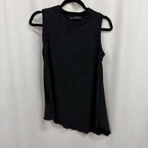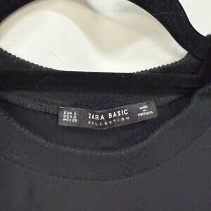 Zara Basics Collection Black Crew Neck Asymmetrical Scallop Hem Black Top S