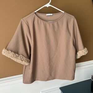 Zara Basics Taupe Crop Short Sleeve Faux Fur Sleeve Top Size Medium