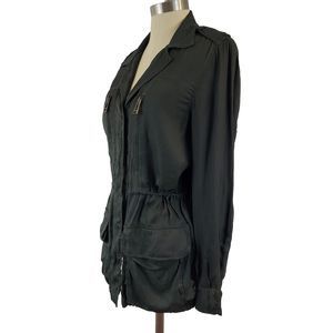 Zara Basics Utility Jacket Lightweight military button up Green Womens Sz M. Large front pockets. Hidden buttons. SMALL HOLE near armpit.