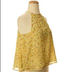 Two layers, sleeveless, loop and one button closure at back neck. Floral print, pre owned in excellent condition! 100% polyester.