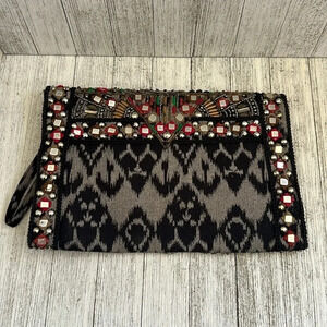 Zara Beaded And Embroidered Clutch Wristlet Mirror Pouch