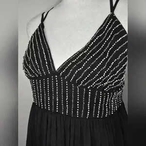 Zara Beaded Empire Waist V-Neck Chiffon Black Mini Dress Size Large In Excellent Condition