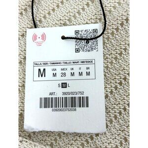 Zara Beaded Necklace Knit Top M Beige Cap Sleeve Boat Neck Stretchy Dressy Party