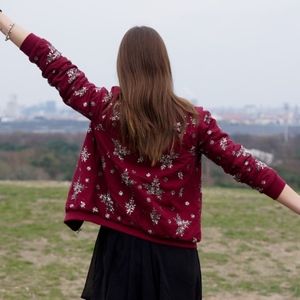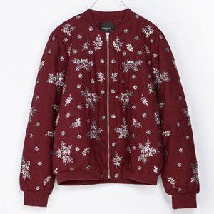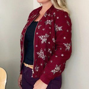 Burgundy/ Oxblood Embellished Bomber Jacket