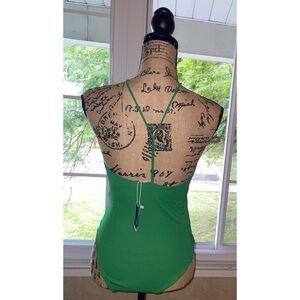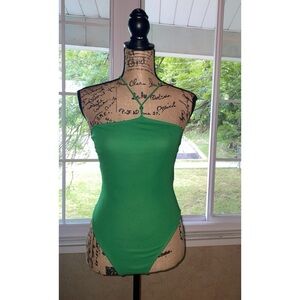 #SU1 Zara Body suit Green Beaded Halter New Without Tags Size Small Snap closure
