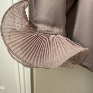 Gently used Taupe Zara long sleeves button down with ruffles at the cuffs. Chic beige blouse with button-up design. Versatile and elegant. Pls see photos and ask questions.