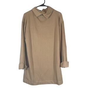 Zara Beige Cowl Neck Long Cuffed Sleeve Knit Sweater Dress Women Sz M
