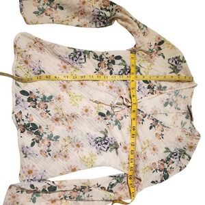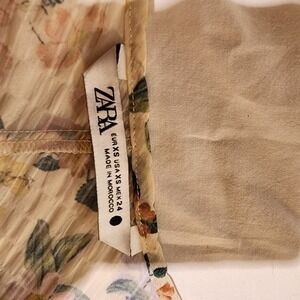Zara Beige Floral Long‎ Sleeve Blouse Top Size X Small