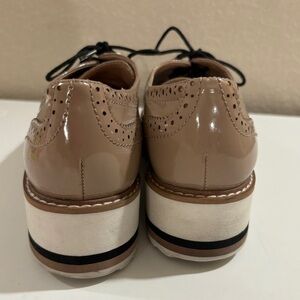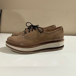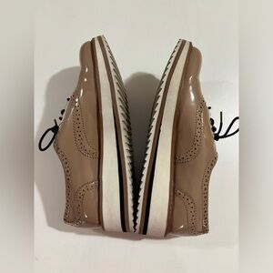 Zara Beige Patent Leather Flatform Bluchers Brogue Style Sneakers 38 7.5