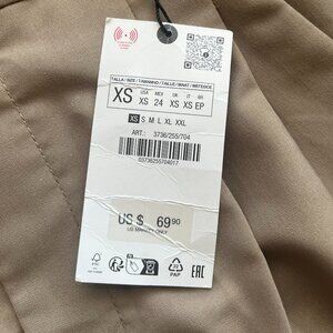 Zara Beige Pleated High Rise Wide Leg Palazzo Pants Trousers Size S