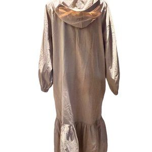 Zara Beige Poplin Hooded Large Midi Dress with V-neckline