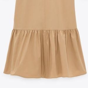 ZARA Hooded Poplin Tiered Midi Dress in soft tan—oversized lagenlook perfection. This piece blends cozy hoodie vibes with feminine flair, thanks to its tiered hem and breathable cotton poplin.