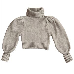 • Features: Puff sleeves, ribbed knit, cropped length, turtleneck, neutral tone