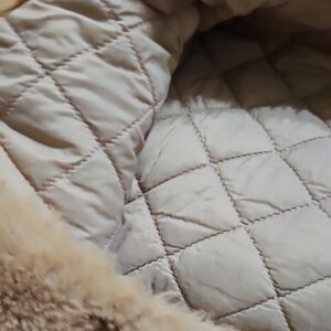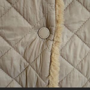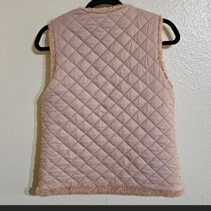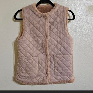 Trendy and versatile reversible vest in beige/tan. One side is water-resistant, perfect for rainy days, while the other side is super soft and warm, ideal for staying cozy. Lightweight, comfortable, and easy to layer in any season. Gently used and in excellent condition.
