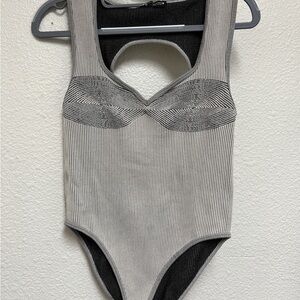 Zara Beige Ribbed Bodysuit