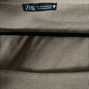 Zara tan ribbed top. Square neck and long sleeves, it's perfect for any occasion.