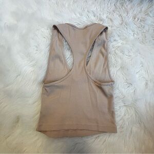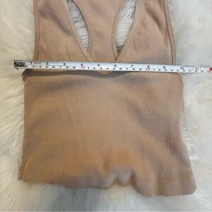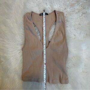 Zara Beige Ribbed Deep V Racerback Tank Top