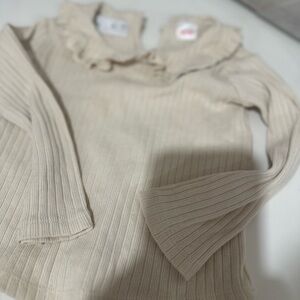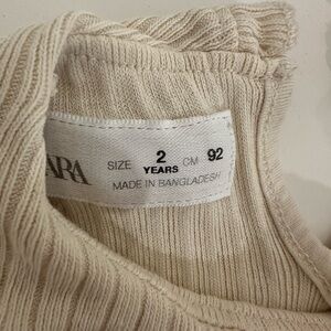 Zara Beige Ribbed Top with Ruffle Detail