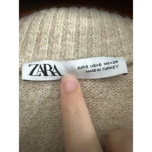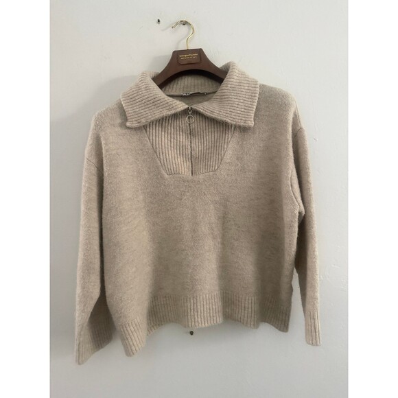 Zara Beige Size S Quarter Zip Cream Cable Knit High Neck Women’s Sweater