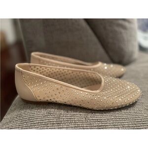 Elegant beige flats with silver studs. Perfect for casual wear.
