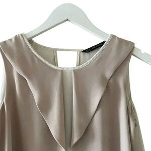 Zara Beige Tan Flutter Flowy Keyhole Closure Flowy Women’s Blouse SZ XS #1692