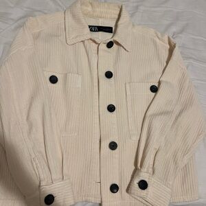 Zara Beige Textured Jacket with Black Buttons
