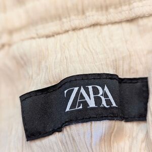 Like new condition. Zara Beige Textured Wave Crinkle Gauze Viscous bland Wide Leg Elastic Waist Size S Pockets Boho