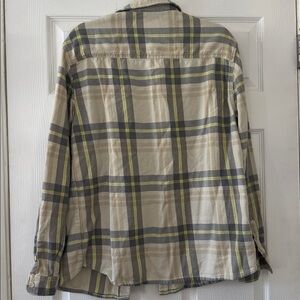 Chic plaid shirt with beige and yellow accents. Relaxed fit for comfort.