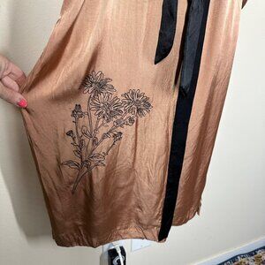 Zara Belted Embroidered Floral Silky Kimono Robe Womens Size XS/S Asian Boho