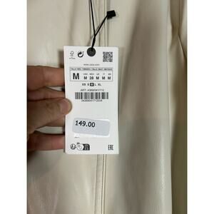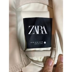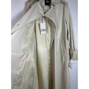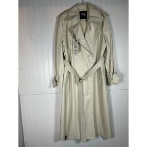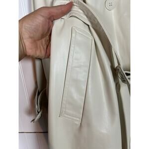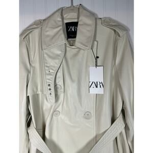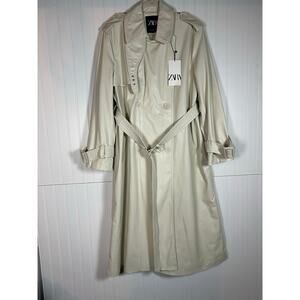 Zara Belted Faux Leather cream Trench Coat size medium oversize NWT