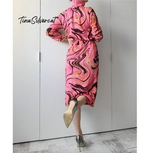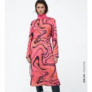 Zara Belted Jacquard Knit Sweater Midi Dress Pink Sz Small NWT