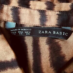Zara Bengal Tiger Pattern Sheer Button Down Shirt Brown Size XSmall