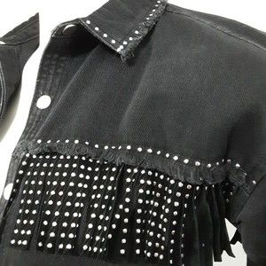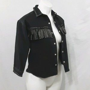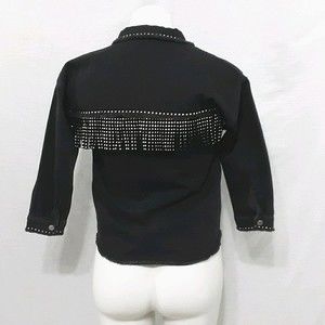 Zara Big Girl Fringed Western Cropped Black Denim Jacket US 8