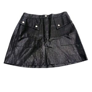 Zara Black A-Line Mini Skirt Front Pockets Silver Buttons SZM