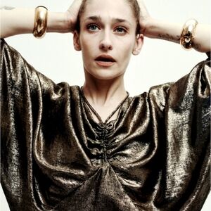 Women's Zara Black And Gold Draped Balloon Mini Dress