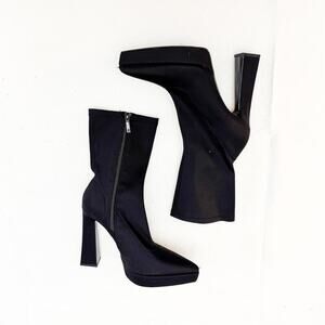 Sleek black ankle boots. Pointed toe design. Side zipper closure.