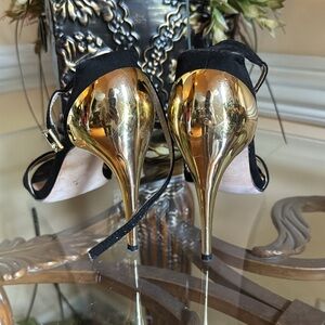 Zara Black Ankle Strap w/Gold Heel Sandals 38