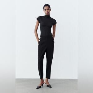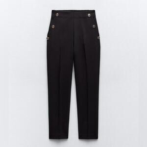 Zara Black BUTTONED STRAIGHT LEG PANTS Size Small