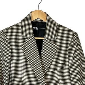 Zara Black Beige Houndstooth Gingham Boxy Cut Blazer Long Sleeve Women's Sz. M-L